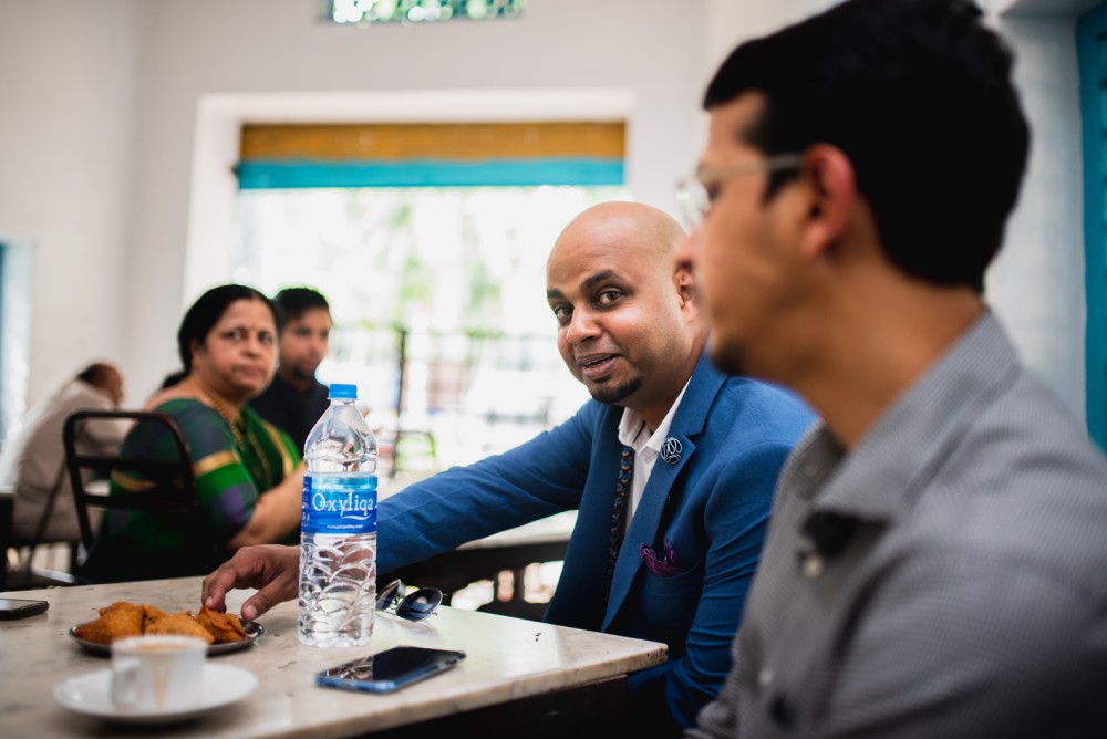 Anujna & Vincent got married at the Pune marriage registrar’s office and then we all walked over to the irani café just down the cross roads for chai and samosas. It happened to be the same place where her father & mother visited almost 30 years ago when they were married at the same registrar’s office.