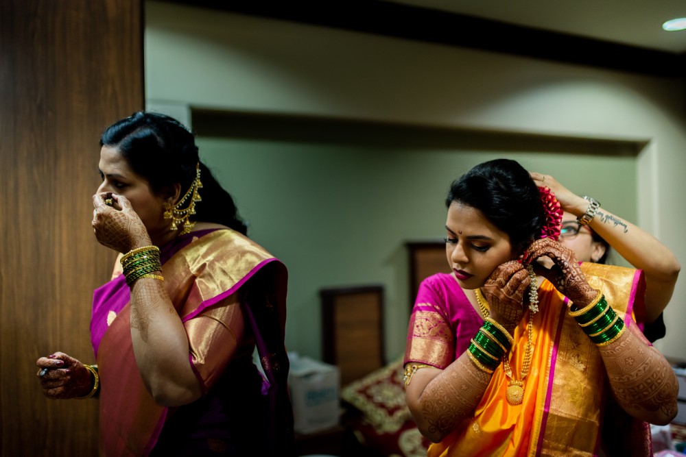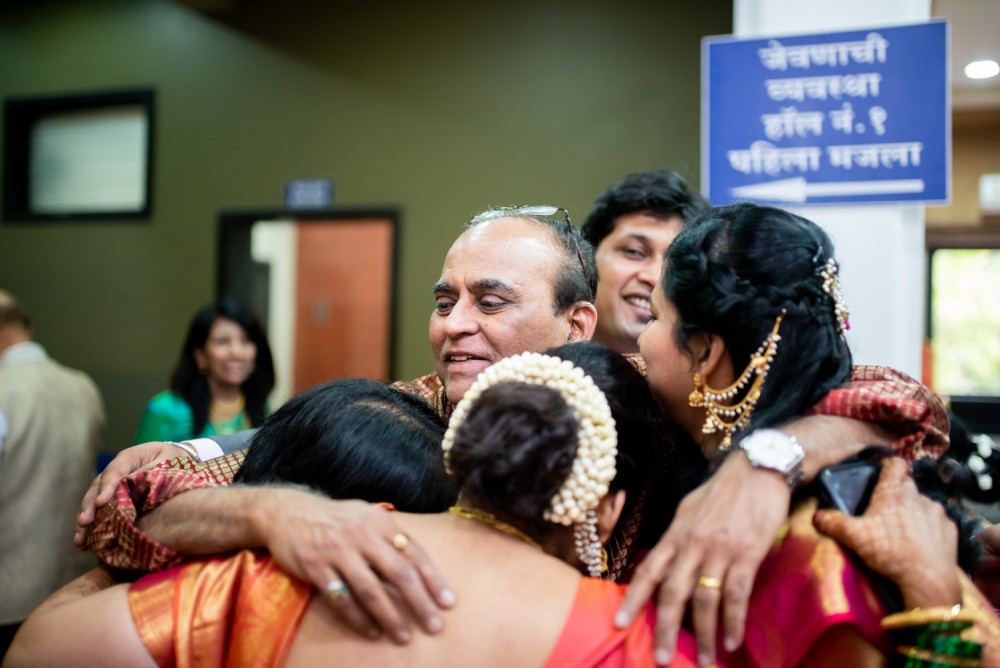 I met Shruti & Kaustub on the day of the Sangeet. They have known each other since college days all the way post graduation and settling down in the US. It was extremely easy to photography these them together. The cool quotient they share is amazing. Shruti was looking stunning with her radiant smile adorning her Marathi bridal look. Kaustub also looked Dapper of a groom. Vidaai was one of the happiest ones I’ve seen with the entire family going for a big warm cozy hug!