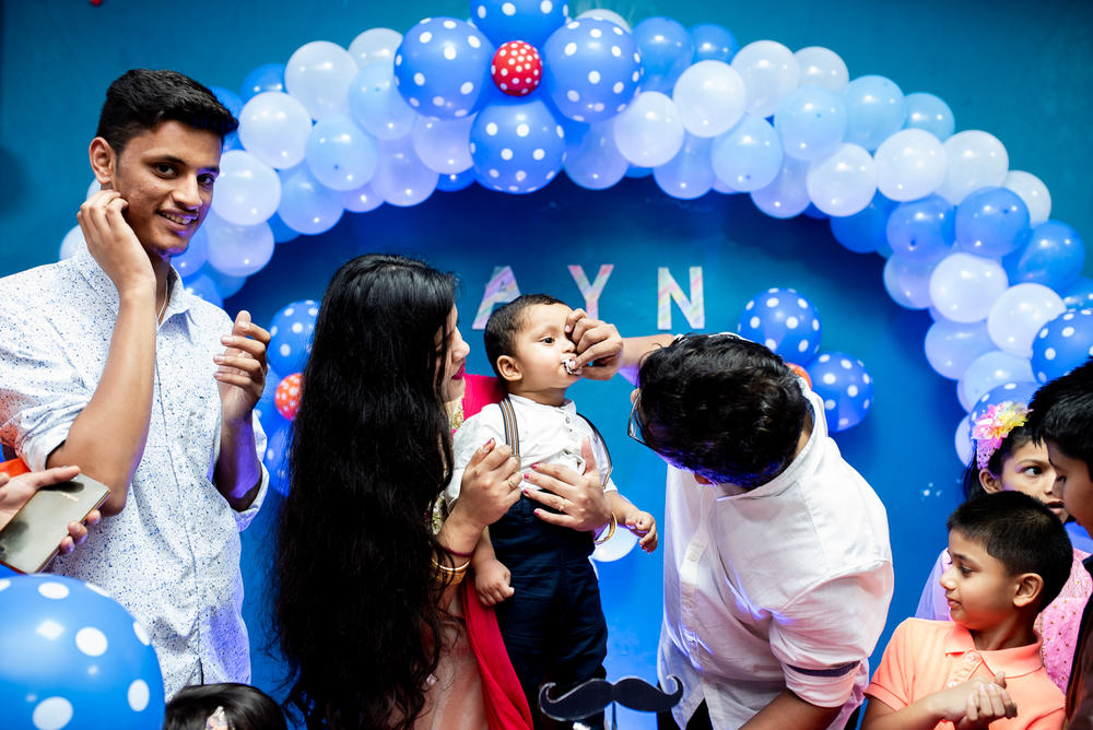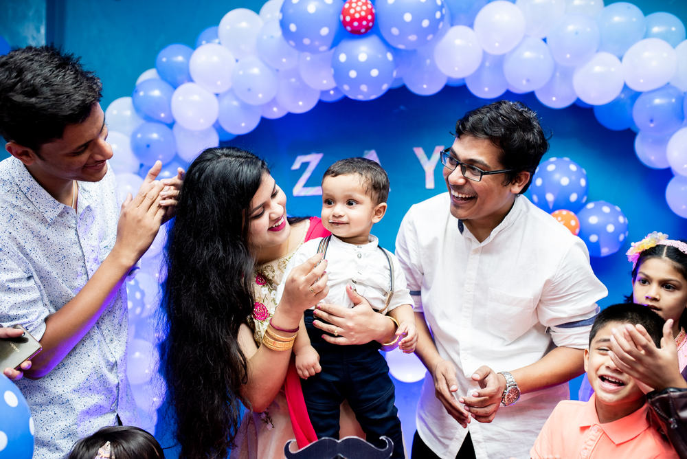 Zayn’s first birthday party was held in their society’s club house. It was a small get together of close family and friends traveling from Pune & Mumbai. Zayn was absolute joy to photograph! We reached early at the venue and took photos of Zayn running around and enjoying his day. We also took a few photos of mom & dad together. It overall a wonderful day filled with love and happiness.